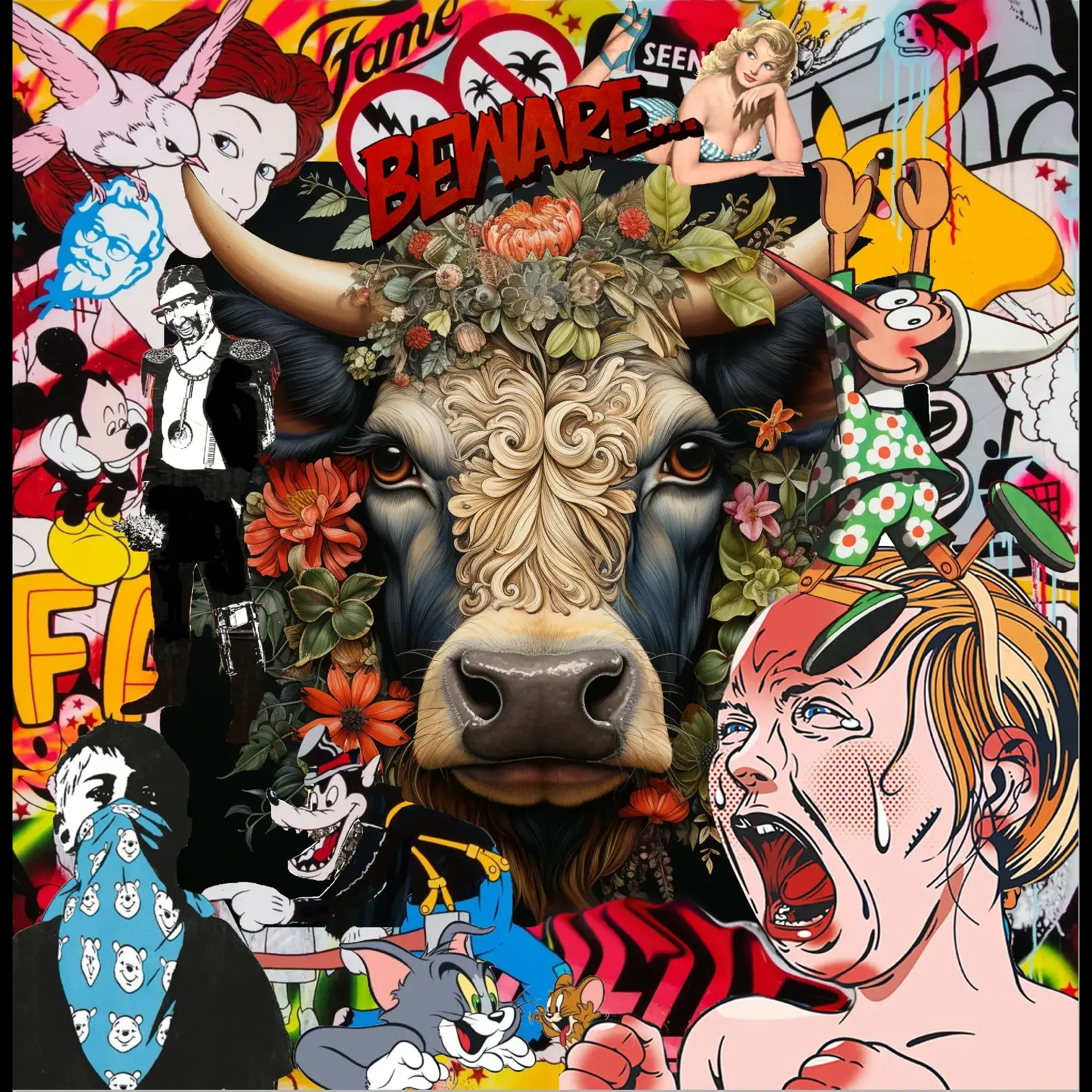 Cowparade – Beware – Het Stille Centrum – In het hart van de heisa staat de koe onbewogen en onverstoorbaar.
