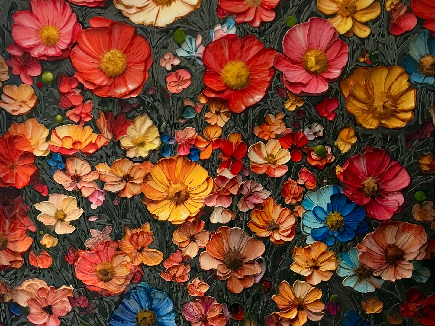 “Spring Fling” is a captivating mixed media artwork that celebrates the rejuvenating spirit of spring through a vibrant display of flowers.
